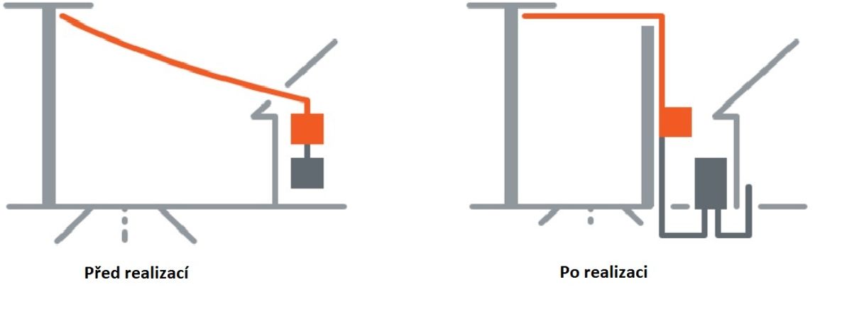 • Na novém podpěrném bodě provedeme nový svod kabelem a osadíme novou pojistkovou skříň.