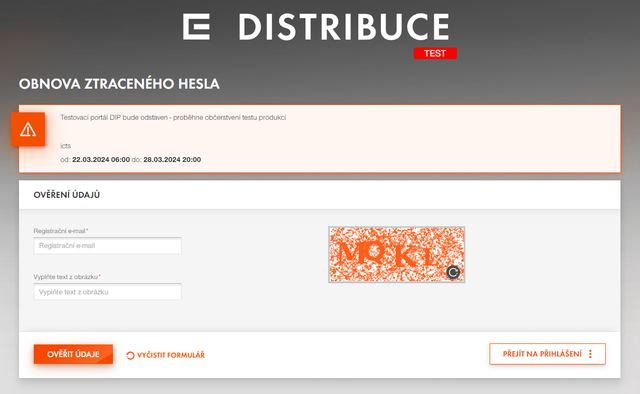 Pokud není e-mail s odkazem doručen, tak zadaný e-mail není registrován do žádného portálu ČEZ Distribuce, a. s., do pole Registrační e-mail je nutné zadat e-mail, který byl použit pro registraci do B2B.