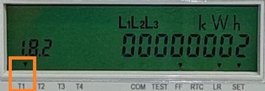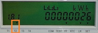 Příklad: Šipka je umístěna nad hodnotou T2, to znamená, že právě běží nízký tarif.