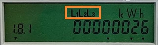 To, zda je ve všech třech fázích napětí, poznáte na elektroměru. Signalizují to zobrazené hodnoty L1, L2 a L3 uvedené vlevo v horním řádku displeje.