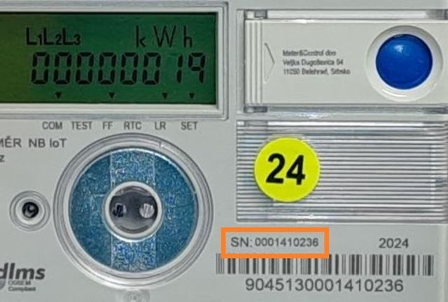 Výrobní číslo elektroměru najdete nad čárovým kódem: