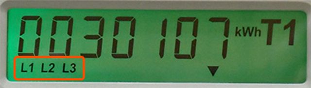 To, zda je ve všech třech fázích napětí, poznáte na elektroměru. Signalizují to zobrazené hodnoty L1, L2 a L3 vlevo ve spodním řádku displeje.