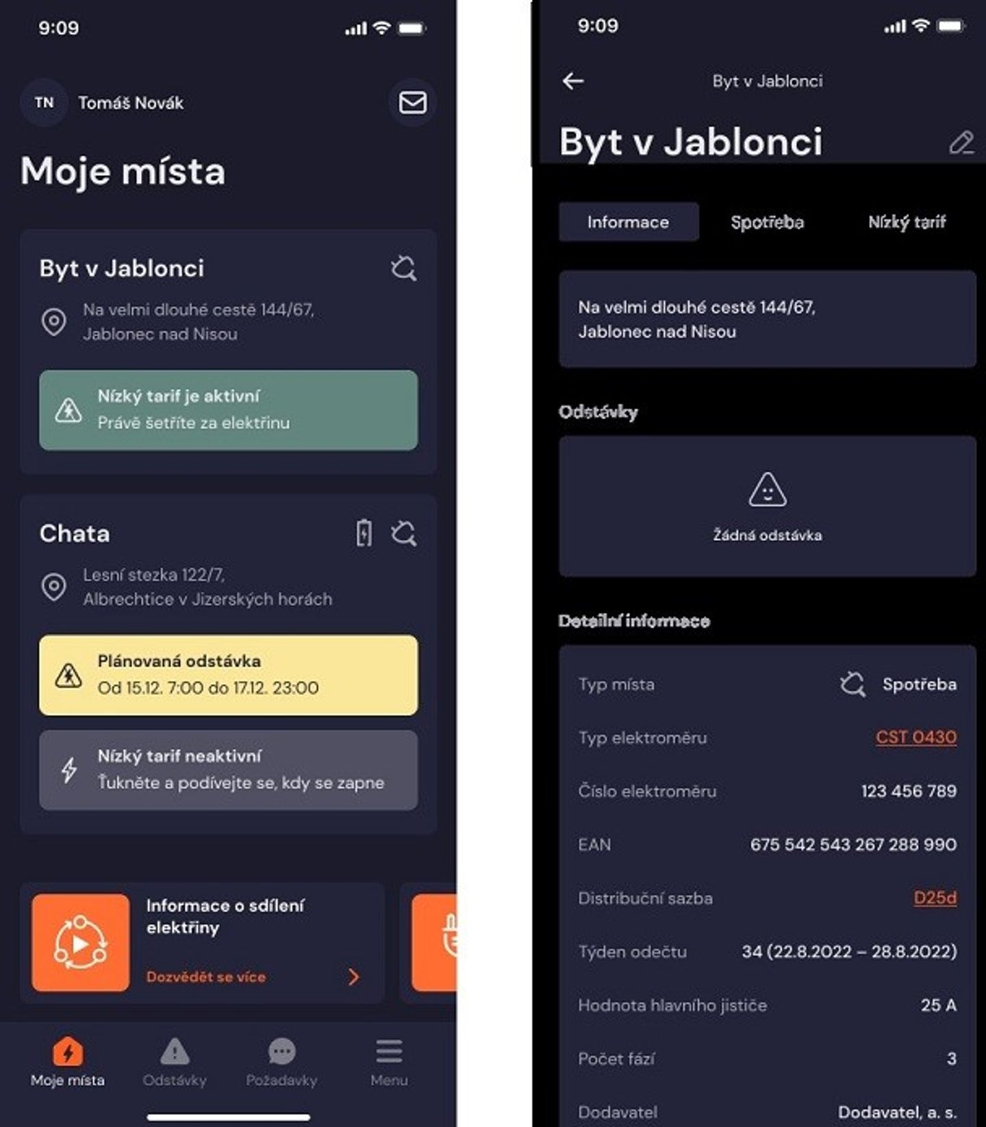 Ano, to se hodí, třeba když se chystáte na víkend nebo na dovolenou na pronajatou chalupu. Stačí zadat adresu a aplikace vám ukáže, jestli tam není odstávka nebo porucha.